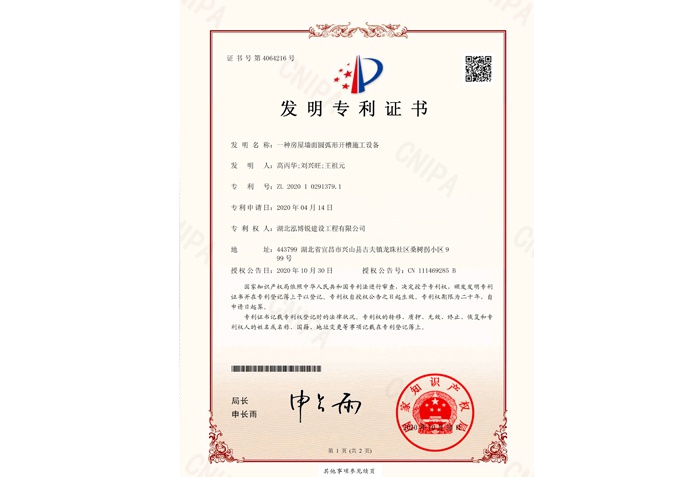 一種房屋墻面圓弧形開槽施工設(shè)備證書