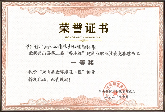 陳林——興山縣金牌建筑工匠一等獎(jiǎng)