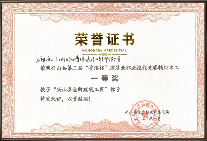 王祖元——興山縣金牌建筑工匠一等獎(jiǎng)